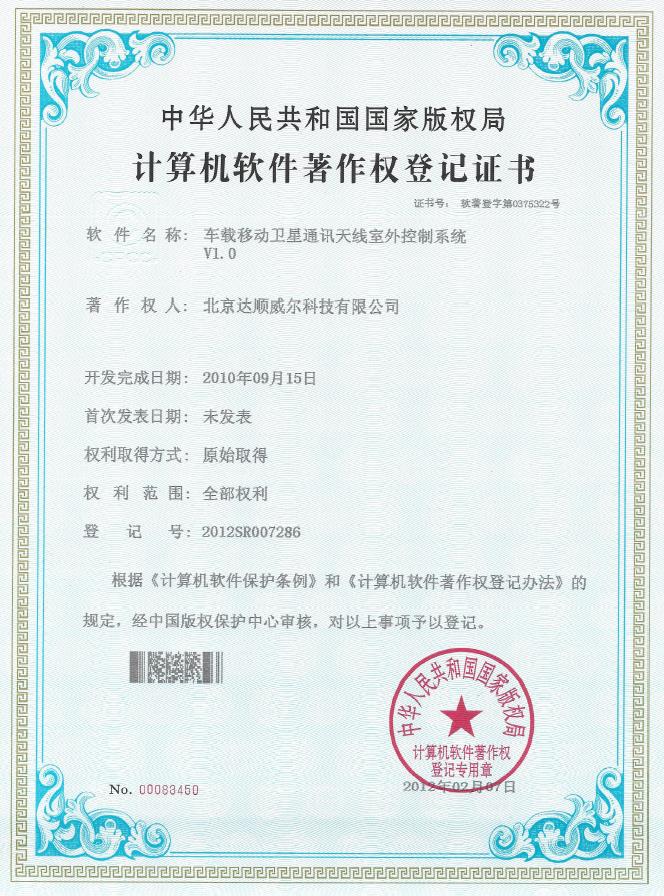 车载移动室外控制0375322:车载移动卫星通讯 室外控制系统v1.0